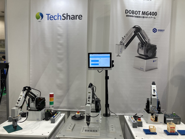 TechShareは、中国のロボットメーカーDOBOTの日本正規代理店として、小型ロボットの販売と技術サポートを手掛けている。なかでも「DOBOT MG400」は、机の上に設置できるコンパクトサイズと、低価格/簡単操作を兼ね備えたロボットアームとして注目を集めている。
