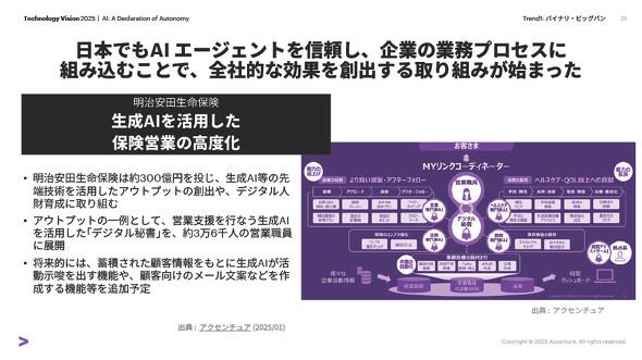 アクセンチュアは年次レポート「テクノロジービジョン2025」に関する記者説明会を開いた。この年次レポートから、AIエージェントの自律や信頼を巡る状況について紹介した。