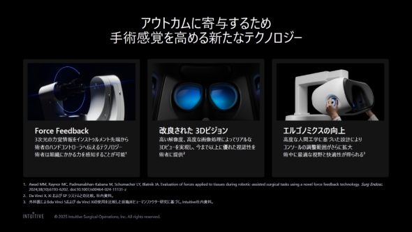 手術支援ロボット「da Vinci(ダビンチ)」を展開するインテュイティブサージカルが、現行モデルで第4世代に当たる「ダビンチXi」から約10年ぶりの新製品となる第5世代の「ダビンチ 5」について説明。2025年7月から国内販売を開始し、同月内に数台の納品を予定している。