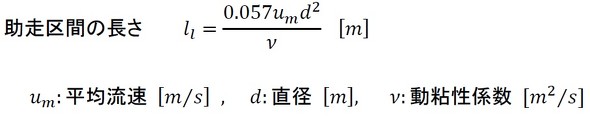 助走区間の長さは、式3で求めることができます(参考文献[2])。数値を代入すると、その長さは14[mm]となります。管の直径が1[mm]なので、図14を見る限り、助走区間の長さとしては妥当な範囲のようです。