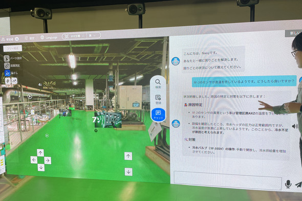具体的には、360度カメラなどを用いて実際の工場の環境をメタバース内に構築。現場のワークフローや施設情報をAIで解析し、それらをメタバース上の場所などとひも付けて蓄積する。そして、このメタバース空間上のナレッジをベースにAIエージェントが回答する。
