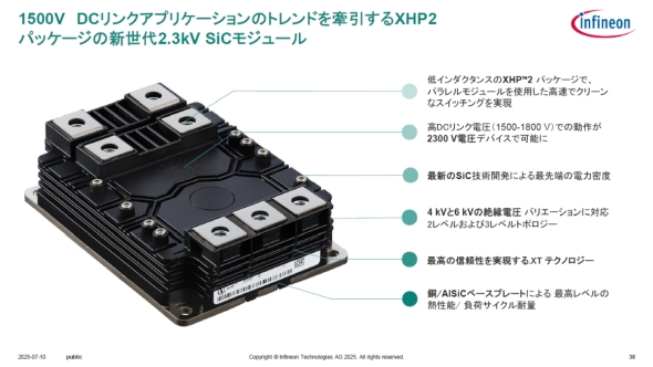 インフィニオンは、SSTや再生可能エネルギーの直流変換システムなど向けに、SiCデバイスを採用した2.3kV対応のパワーモジュールを開発済みだ。SSCBについても、電力分配に特化した設計を採用したJFET(接合型電界効果トランジスタ)のSiCデバイスを用意している。「SiCのパワー半導体としてはMOSFETが一般的だが、SSCB向けでは、オン抵抗が低い上に、突入電流に耐えるためのリニアモードの安定性と、スイッチを切る際に発生する過電圧に耐えるアバランシェ耐性が高いJFETが最適だ」(藤森氏)という。