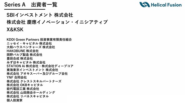 田口氏は「Helix HARUKAの建設で必要な予算はおよそ400億円を見込んでいる。Helix KANATAの建設には、数千億円〜1兆円規模の資金が必要だ。そのため、民間の投資だけでは対応が難しく、最終的には国の関与が必須だと考えている」と話す。また、スタートアップの投資フェーズの1つである「Series A」で23億円を得られ、資金調達の累計は53億円となった。