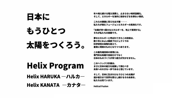 Helical Fusionは、東京都内とオンラインで記者会見を開催し、ヘリカル型核融合炉の実用発電計画「Helix Program(ヘリックス計画)」を発表した。