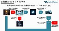 Helical Fusionが研究開発を進めるヘリカル型核融合炉は、ヘリカルコイルを使用することで、理論的に継続運転に限界がない。同社はヘリカル型核融合炉の要素技術であるLHDを使用し、48分間の連続運転を実証した実績もある。ヘリカルコイルは安定した磁場を創出し、制御のために高いエネルギーを追加する必要がない。そのため、高いエネルギー効率を実現する。これらの特徴により、商用核融合炉で必要な3要件を満たしている。発電所の発電量から、自家消費分や送電ロスなどを除いた、実際に利用可能な電力量である正味電力もトカマク型やレーザー型に比べて創出しやすいという。