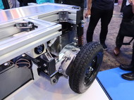 スズキは、「国際物流総合展2024」において、AGVやAMRなどさまざまなロボットの足回りに適用できる「電動モビリティベースユニット」を披露した。
