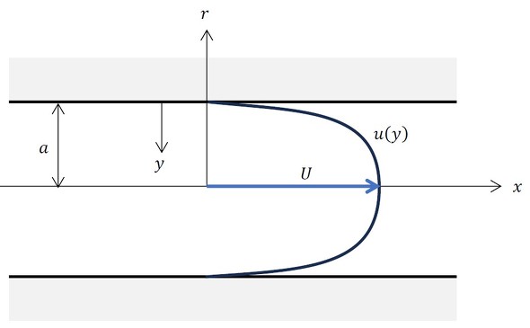 図2に、円管あるいは平行壁間における層流の速度分布を示します。