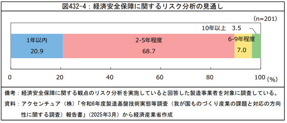 経済安全保障に関するリスク分析の見通し期間[クリックで拡大] 出所:2025年版ものづくり白書内のアクセンチュア「令和6年度製造基盤技術実態等調査(我が国ものづくり産業の課題と対応の方向性に関する調査)報告書」