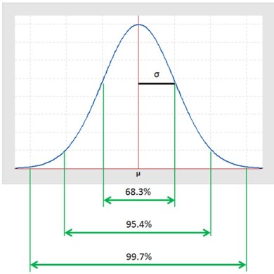 - ±6σになると、ほぼ完全(99.9997%)に全てのデータが収まります
