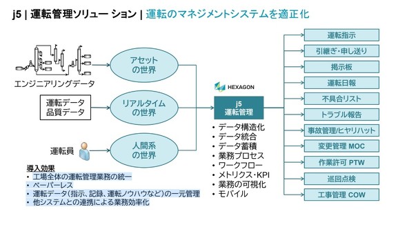 Hexagonは、石油/化学プラント向けの運転管理ソリューション「j5 Operations Management Solution(j5)」と運転手順書ソリューション「 AcceleratorKMS」の連携機能を2026年に国内で正式リリースすると発表した。