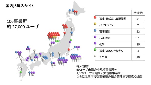 j5は、運転員の作業プロセスデータや、プラントのエンジニアリングデータと運転データ、品質データなどを基に、データの構造化、統合、蓄積、業務プロセスやワークフロー、メトリクス/KPIの構築、業務の可視化などが行える。コア機能として、「運転指示」「運転ログ」「運転報告」「掲示板」といったアプリケーションを備えている。