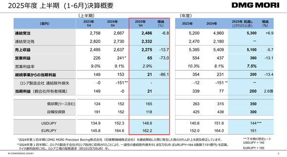 DMG森精機は2025年8月1日、オンラインで記者会見を開き、2025年度上半期(同年1〜6月)の決算概要を発表した。