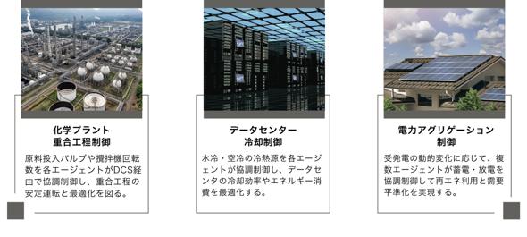協調制御AIの適用例としては、化学プラントやデータセンターの冷却、電力アグリゲーション制御などを挙げている。その導入により、制御の最適化とエネルギー効率の向上の両立が可能になると見込まれる。