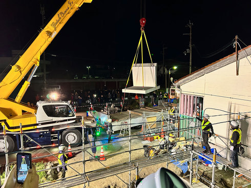 駅舎など線路に隣接する建物の建設工事は一般的に、安全面から列車の走っていない夜間に実施するため、工期が通常の建設工事より長期化する傾向があり、鉄筋コンクリート造駅舎は屋根や壁など躯体の設置に1〜2カ月を要する。今回のプロジェクトでは、基礎部分を含め、躯体工事を最終列車から始発までの6時間で完了することを目標にしていた。