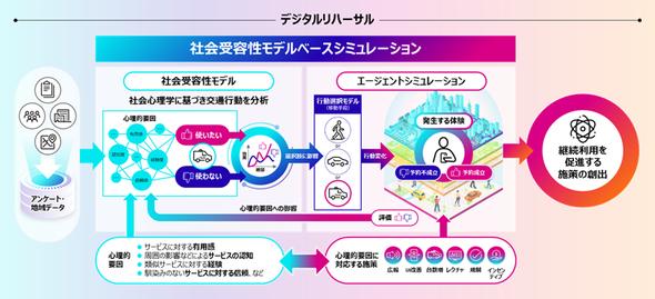 富士通と名古屋大学は2025年7月24日、交通空白解消を促進する新たな交通サービスの定着を図るため住民の心理的要因や選択をシミュレーションする「社会受容性モデルベースシミュレーション」を開発したと発表した。