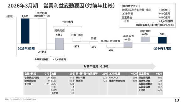 マツダの2025年度の営業利益は前年度比7割減の見通し、関税が響く:製造マネジメントニュース(2/2 ページ)