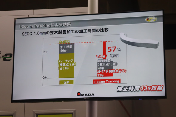 こういった状況を踏まえて、アマダは鍛圧機械の国際展示会「第8回 プレス・板金・フォーミング展(MF-TOKYO 2025)」(2025年7月16〜19日、東京ビッグサイト)で、ティーチング補正の工数などを削減する、ファイバーレーザー溶接マシンの新機能「i-Seam Tracking」を参考出展した。