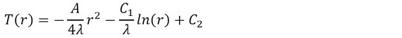 その結果、円管外部のコンダクター側の温度分布は式7となります。