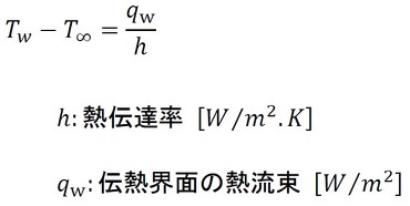 円管外壁の温度Twと、主流の温度T∞の差は、式4で求めることができます。
