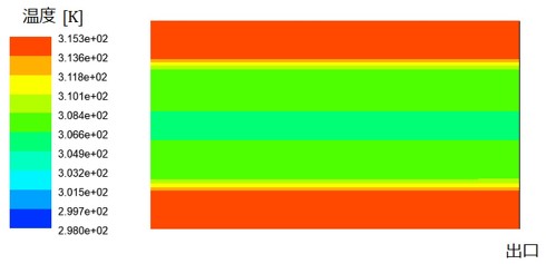 図9に温度分布を、図10に熱流束分布を示します。熱流束分布については、設定した境界条件がそのまま反映されています。