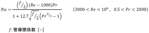 続いて、式13はグニーリンスキー(Gnielinski)の式です(参考文献[1])。