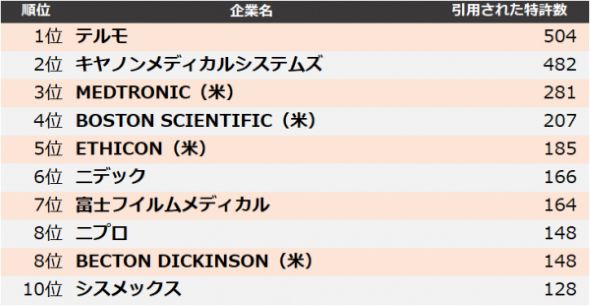 医療機器の特許影響力ランキングを発表:医療機器ニュース