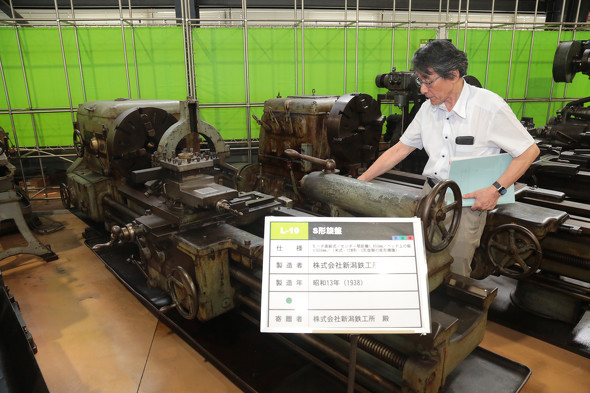 「マニュアル旋盤を年代順に並べており、1938年(昭和13年)に新潟鉄工所で製作されたS型旋盤も置かれている。これは、第二次世界大戦が始まる頃になると外国製機械の輸入が困難になり、政府が当時の工作機械5大メーカー(池貝鉄工所、大隈鐵工、唐津鉄工、新潟鉄工、東京瓦斯電気工業)に、他のメーカーでも製造可能で、より高度な工作機械の標準的な図面を、各社が得意な機種について作成させ、工作機械を増産させた時の機械をS型と呼んでいる」(清水氏)