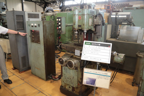 清水氏が「普段はあまり注目されないが」と言いながら立ち止まったのは、1962年(昭和37年)製のピンボード方式プログラム制御のフライス盤(松浦機械製作所)だった。