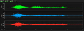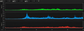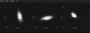 加工振動の振幅に加え、XYZ軸方向への振動重心の偏りをリアルタイムに計測するとともに、FFT解析(高速フーリエ変換)による周波数分析の結果を表示し、異常を可視化する。22.0kHz(1秒間に2万2000回データを取得)という高いサンプリングレートにより高精度に分析し、突発的なトラブルの原因特定にも貢献する。