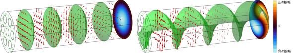 構造化電波は、電波の波面構造や偏波状態、位相、周波数などを組み合わせて生成するもので、今回は渦状の波面(OAM:軌道角運動量)を重ね合わせた形状を利用した。同技術は、観測対象に合わせて波面や偏波状態を自在に設計、制御できる。渦状波面を持つ構造化電波の状態を視覚的に確認しながら観測対象に最も感度や精度の高い電波を選択し、高精度な観測が可能になる。