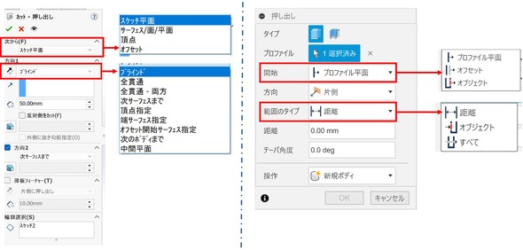 多くの3D CADでは、押し出しの開始位置や終了位置を細かく設定できます。まずは機能をしっかりと覚え、自在に使いこなせるようになりましょう。