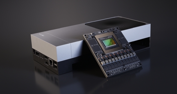 NVIDIAは2025年8月25日(現地時間)、組み込みAI(人工知能)ボード「Jetsonシリーズ」の最新製品となる「NVIDIA Jetson AGX Thor(以下、Jetson AGX Thor)」を発表した。AI処理性能はFP4(4ビット浮動小数点演算)で2070TFLOPSで、これは現行の組み込みAIボードでフラグシップの「NVIDIA Jetson AGX Orin(以下、Jetson AGX Orin)」の7.5倍に達する。Jetson AGX Thorの機能を集約したSoM(System on Module)を専用筐体に組み込んで提供する開発者キットの価格は3499米ドル(約51万6500円)。