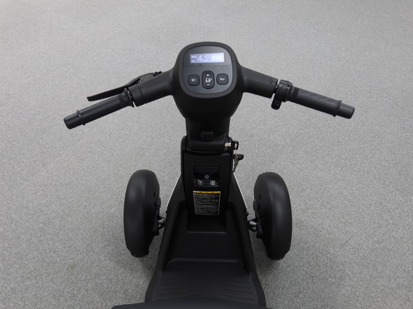 運転操作はスクーターのように右手のアクセルグリップを回すと前進できる。左手にはブレーキレバーがあるが、アクセルグリップを戻すと減速し、停止できる。状態表示パネルには、設定した最高速度やバッテリーの残量が表示される。最高速度は時速1〜6kmの6段階で調整できる。アクセルグリップの回し方でスムーズに加減速するには慣れが必要だが、最高速度を下げれば滑らかに加減速しやすい。
