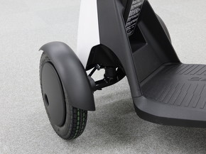 高い乗車位置だが、フロントの8インチの大径タイヤとサスペンションにより安定性を高め、最大7.5cmの段差や最大幅10cmの溝を乗り越えられる。エアタイヤで乗り心地も高めた。また、四輪でバッテリーを前方に配置することも安定性向上に寄与している。段差や溝には直角に進入することが推奨されているが、多少斜めに進んでも通過できる。きれいに舗装された歩道ばかりではないことも念頭に、走行性能に力を入れた。