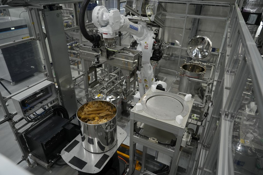 新たなスピリッツ・リキュール工房において取り組んだのが、原料ハンドリング工程の自動化だ。サントリーでは2023年から、サントリー九州熊本工場内に構築した原料ハンドリング自動化検証設備を用いて、安川電機とともにAI(人工知能)なども活用した自動化技術の開発に取り組んできた。