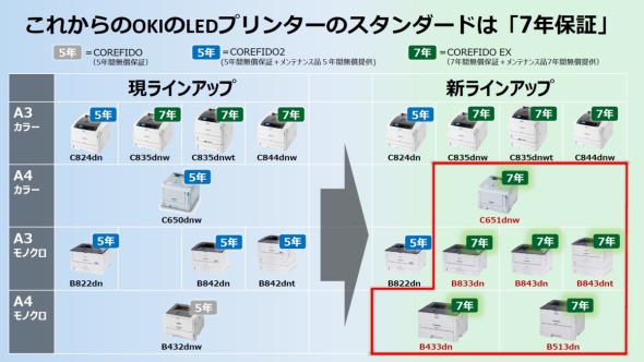 OKIのLEDプリンタは7年保証が標準に、A4モノクロ機は10年ぶりの刷新:デザインの力(1/2 ページ)