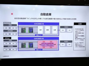 今後は生産計画の部門と連携しながら、自律走行型搬送ロボットを活用しながら部品の移載や搬送の自動化を目指していく。「これからも倉庫の変革を進めていく。特に、人とロボットの協調させることで、人がモノ運ぶ/載せ替えるといった作業についてバージョンアップをしていく」(自動倉庫の担当者)