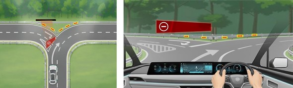 また、空中映像重畳機能により両目に異なる視差画像を同時に表示し、裸眼で立体映像を視認できる3D表示にも対応する。従来方式に比べてスリム化され、可搬性も高い。屋外や通路中央など多様な空間への案内表示への応用が可能で、公共施設や交通案内などでの活用が期待される。