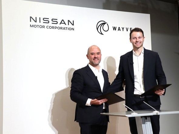 日産自動車(以下、日産)と英国のAI(人工知能)スタートアップであるWayveは2025年12月10日、東京都内で記者会見を開き、WayveのAI(人工知能)技術の採用により次世代に進化させた日産の運転支援システム「プロパイロット」(以下、次世代プロパイロット)を幅広い車種に搭載するための協業契約を締結したと発表した。次世代プロパイロットを搭載した最初のモデルは、2027年度内に日本国内で発売する予定だ。